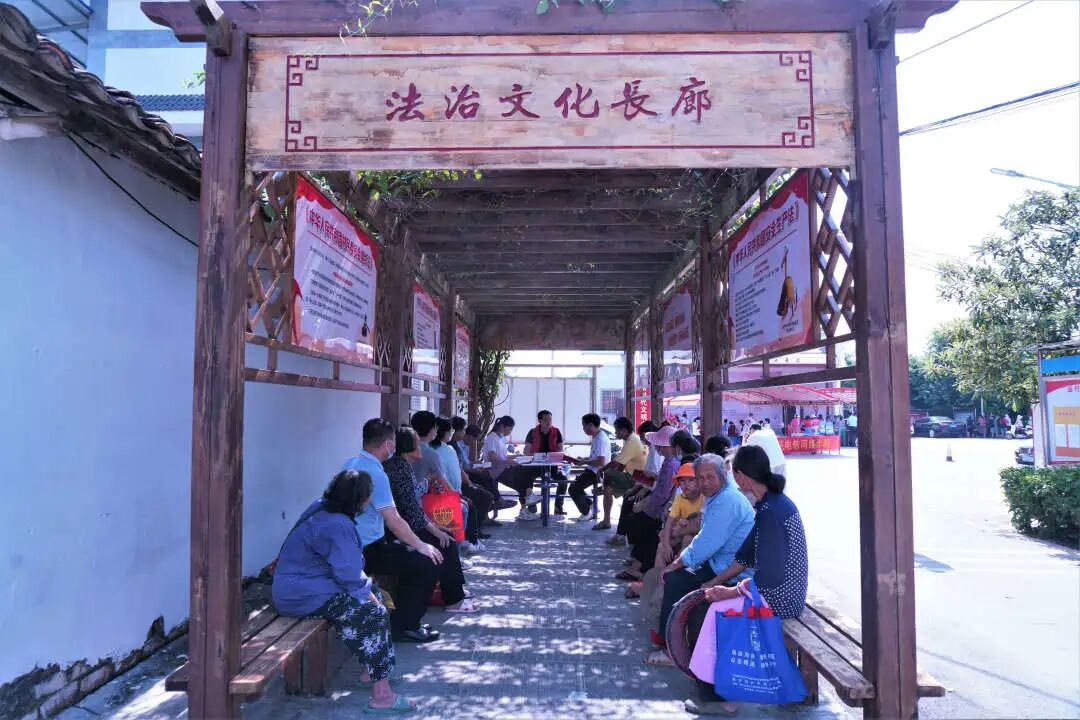 ▲全国文明村——兴宁区三塘镇围村村在村法治文化长廊开展《中华人民共和国民法典》宣传教育活动。侯呈志 摄