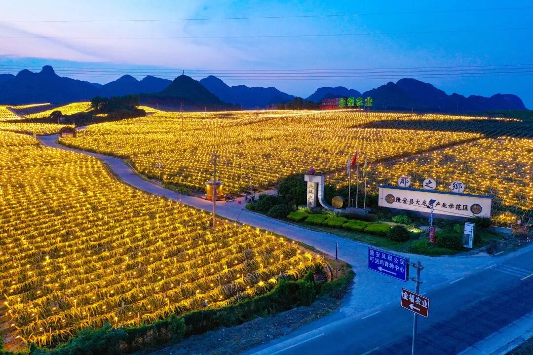 ▲隆安县金福火龙果种植基地夜景。卢昱霞 摄