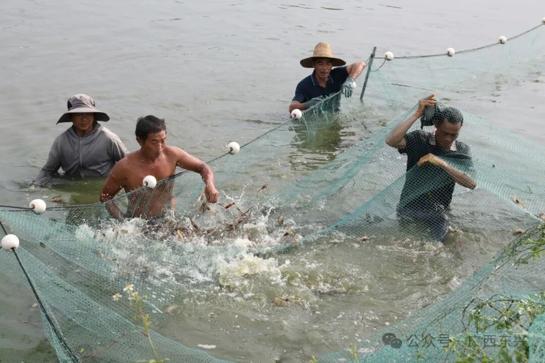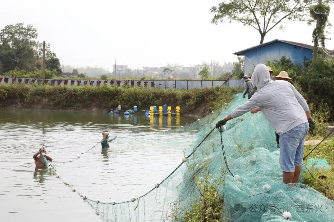 金秋午后,阳光洒在水面,泛起粼粼波光。近日,记者来到东兴镇松柏村集体经济罗氏沼虾养殖基地,现场一片忙碌。工人们缓缓收紧渔网,罗氏沼虾跃出水面、掀起浪花,随着虾群的大片聚集,捞虾、分拣、称重、上车,一批个大饱满的罗氏沼虾赶在中秋佳节前夕销往全国各地。